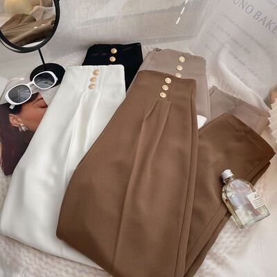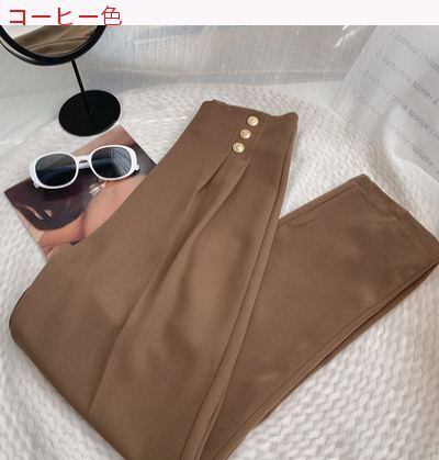 ダブルブレスト/ハイウエスト/スーツ/ロングパンツ/女/秋冬/新しいデザイン/韓国風/レジャー/スキニー/何でも似合う/ストレート/スリムパンツ