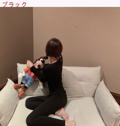 暖かい/下着/セット/女/秋冬/レース/丸襟/長袖/ボトムシャツ/ハイウエスト/ストレッチ/スリムパンツ/パジャマ/セット