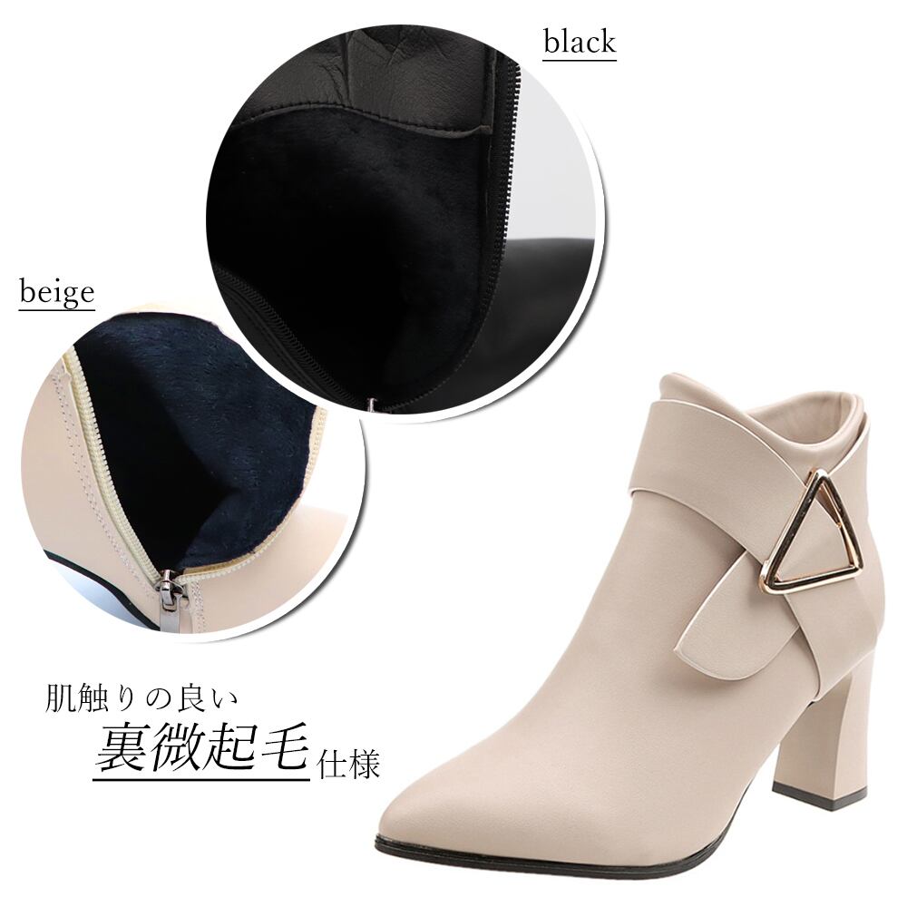 女性らしさを際立てるすっきりとしたデザイン、スッキリ脚長スタイルの美脚ショートブーツ