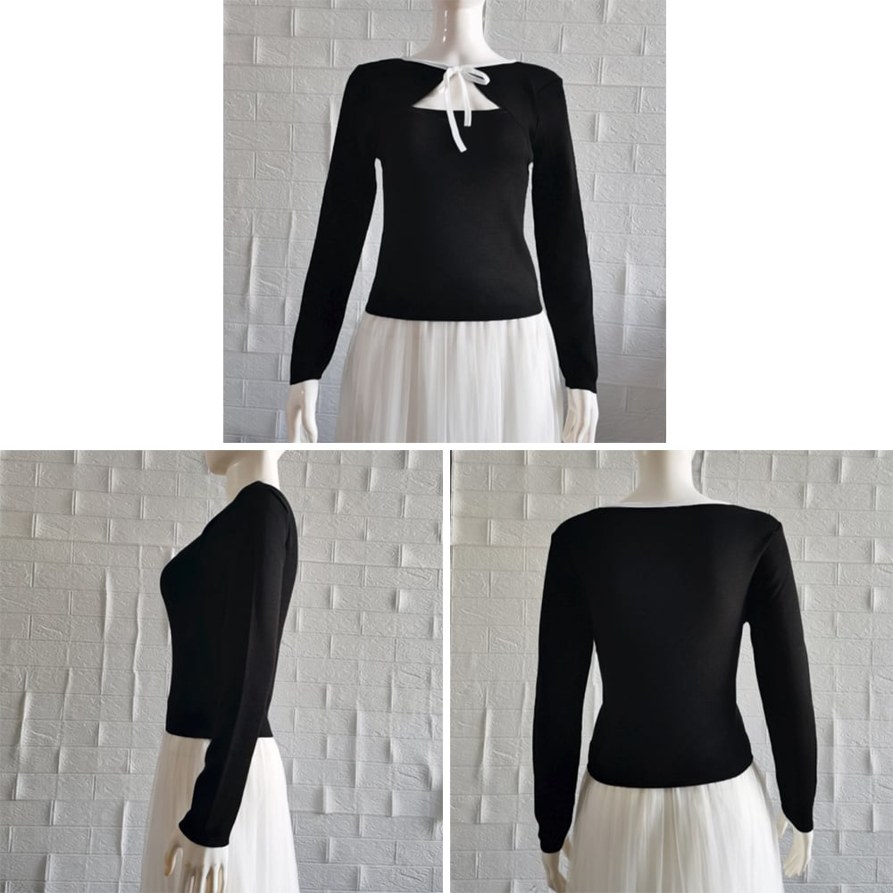 フロントオープンリボンデザインがセクシーな雰囲気を醸し出すニットトップス