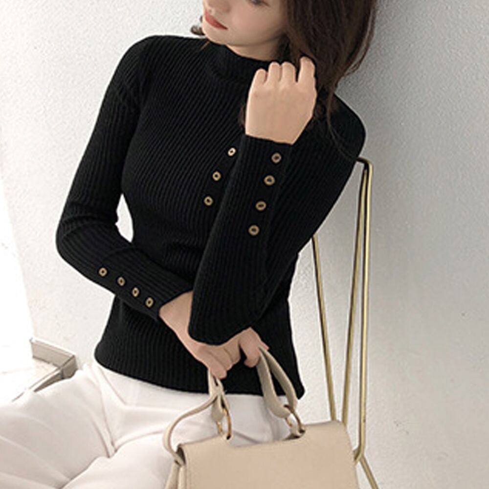 シンプルテイストな中に可愛らしいボタンがアクセント!!秋冬本命リブニット
