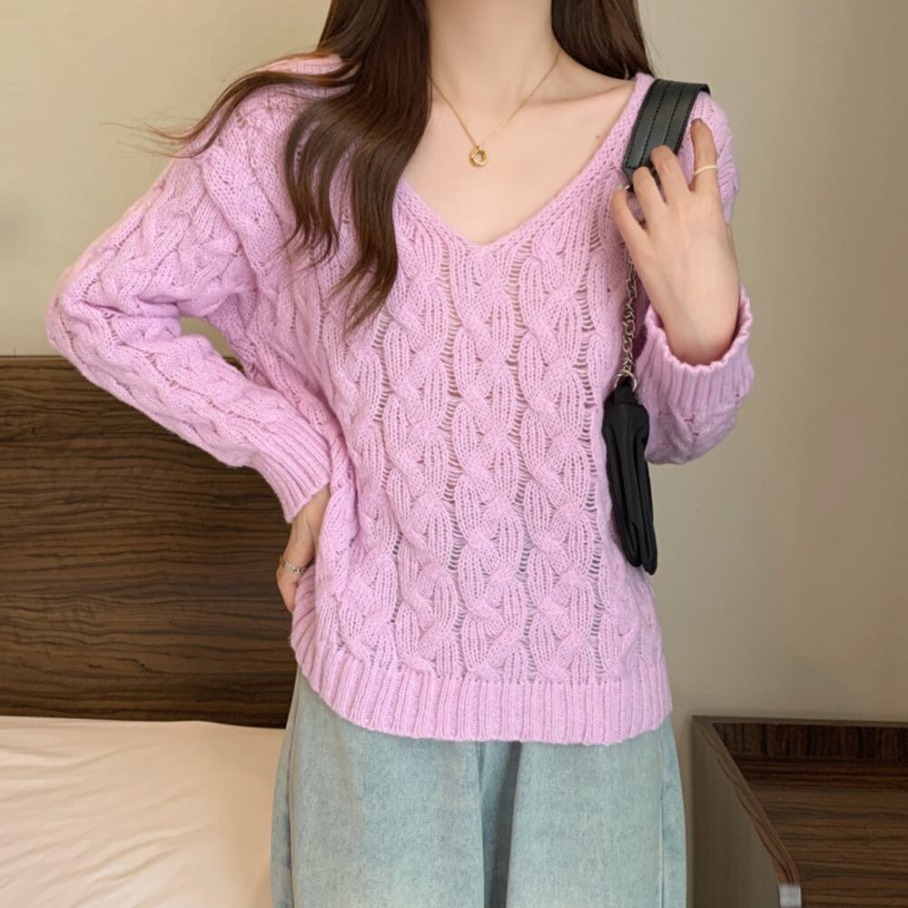 ざっくり編みが抜け感をプラスするケーブルニットトップス