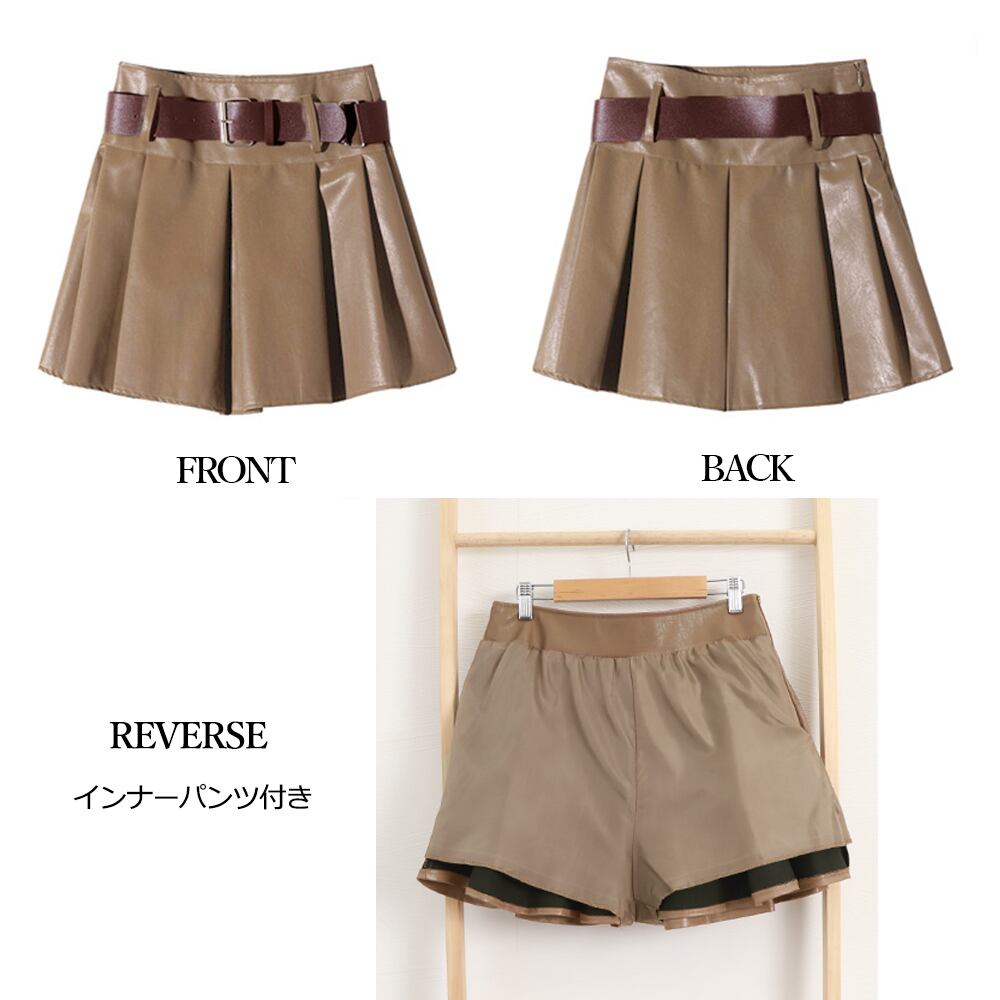 レディース ハイウエスト フレアミニスカート PU韓国風 ショート丈スカート きれいめインナーパンツ付き 脚長 おしゃれ