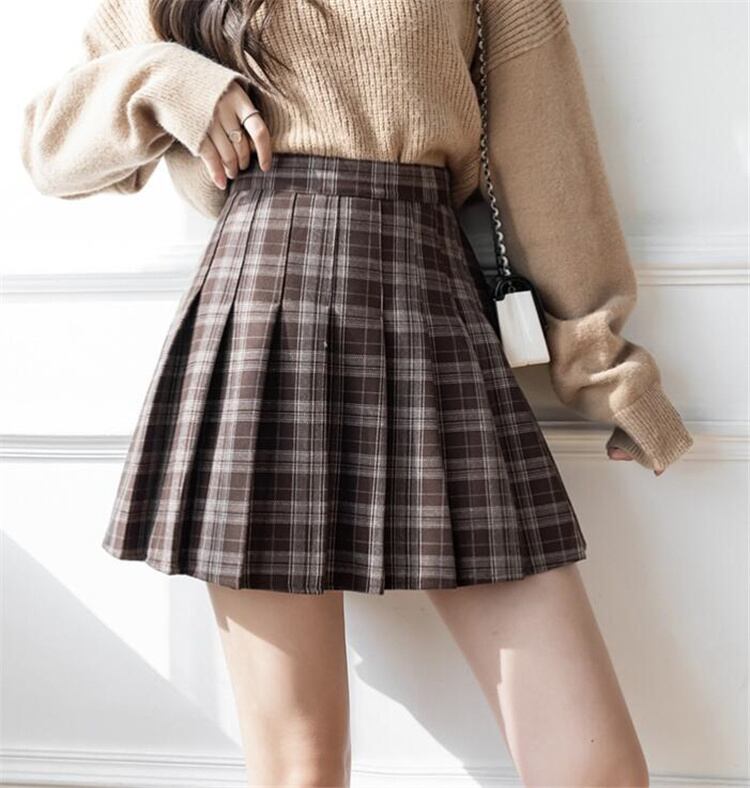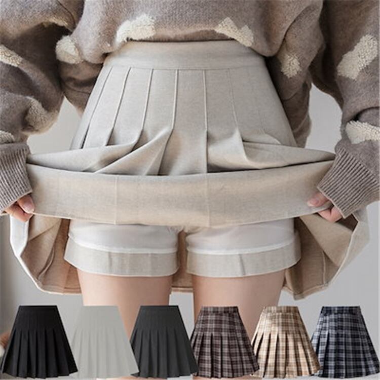 プリーツスカート スカートレイヤード 可愛い 秋冬 無地 チェック レディース