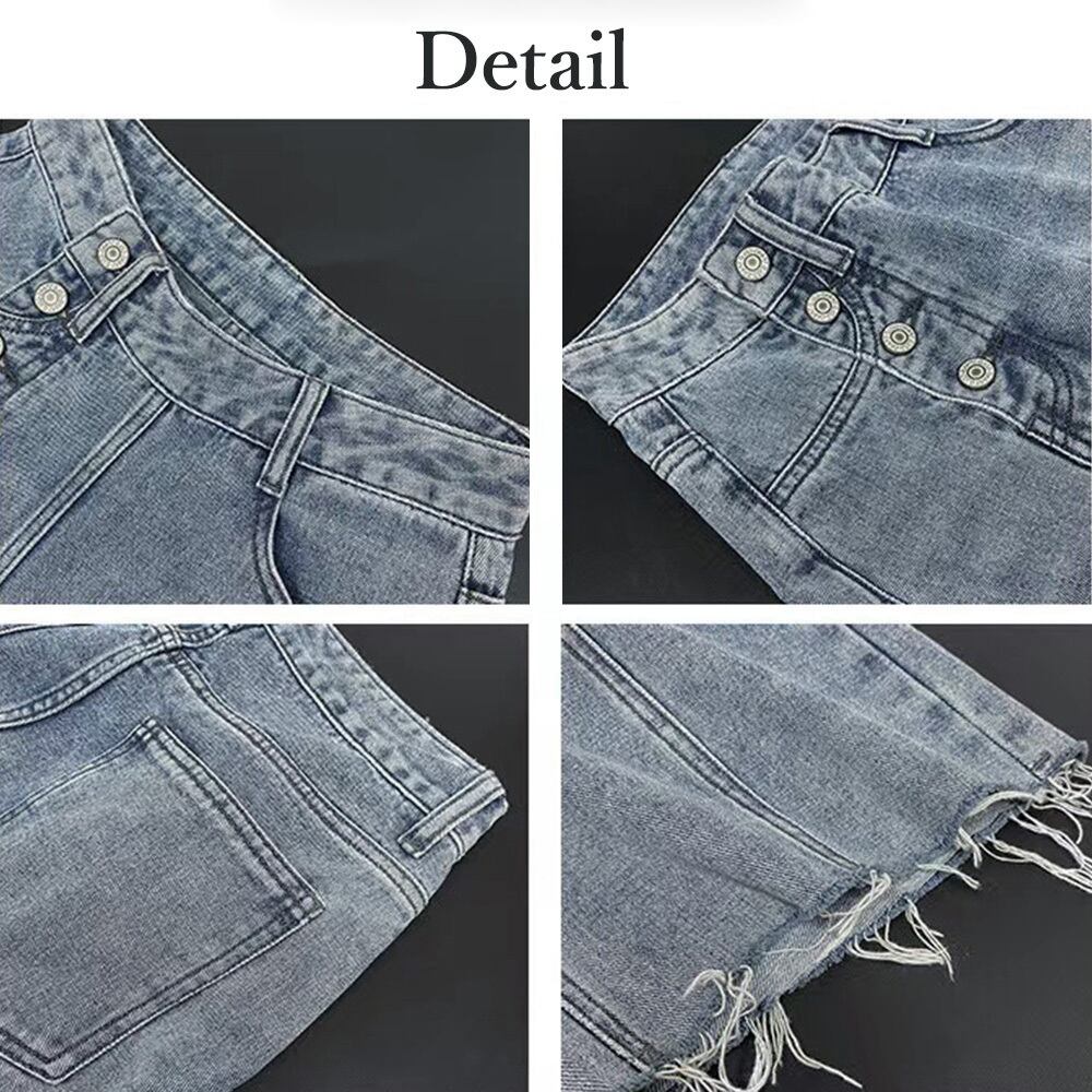 4連ボタンデザイン/美脚デニム春夏秋冬/脚長ジーパン着やせ