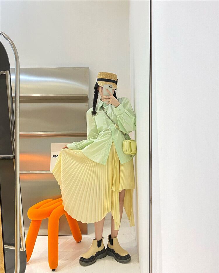 中・長セクション ハイウエスト プリーツスカート レディース 気質