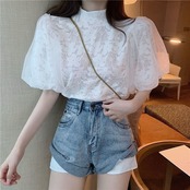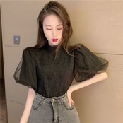 ボリューム袖でトレンド感たっぷりに仕上げたTシャツ。