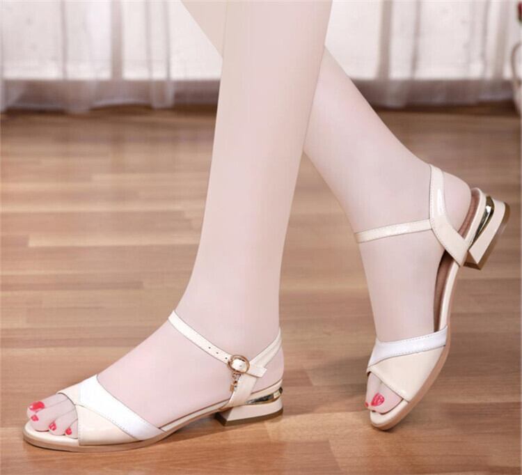 韓国ファッション 太いヒール レディース ローヒール 一字型ボタン サンダル
