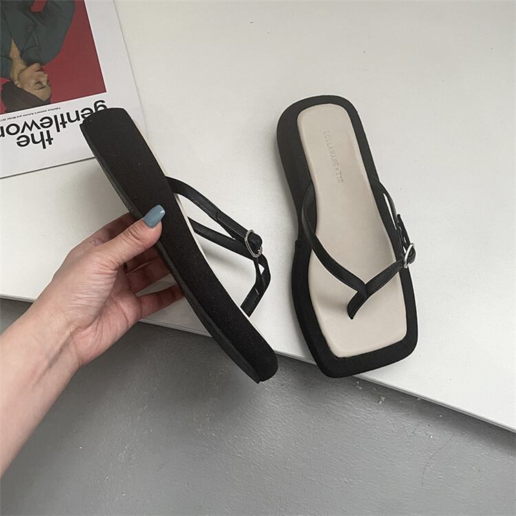 夏 レディース 高品質 カジュアル 厚底 スクエアトゥ トング 滑り止め スリッパ 気質