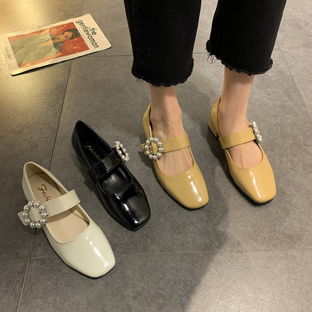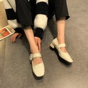 小さな革の靴ファッション百掛け シングルシューズ 減齢 太いヒール レディースシューズ