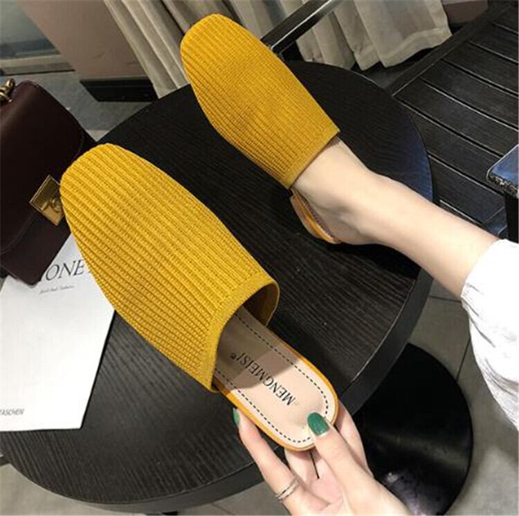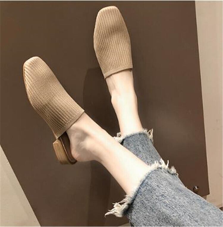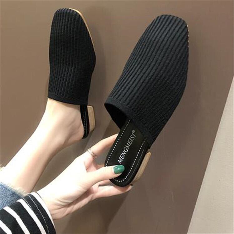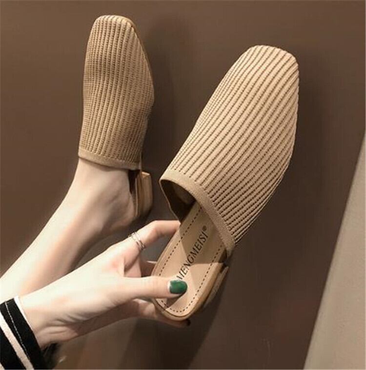 ファッション 包頭 百掛け スクエアトゥ フラット 太いヒール サンダルとスリッパ