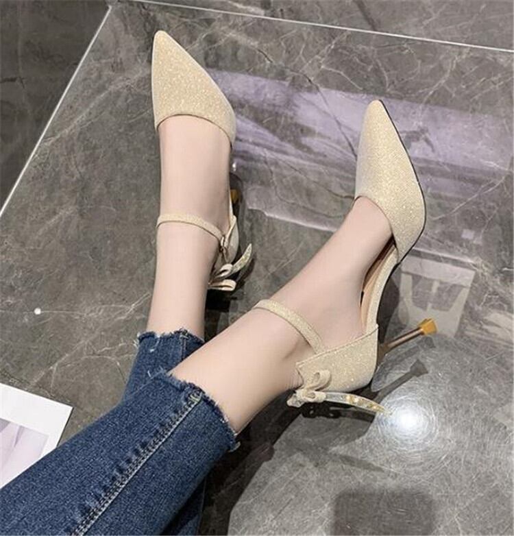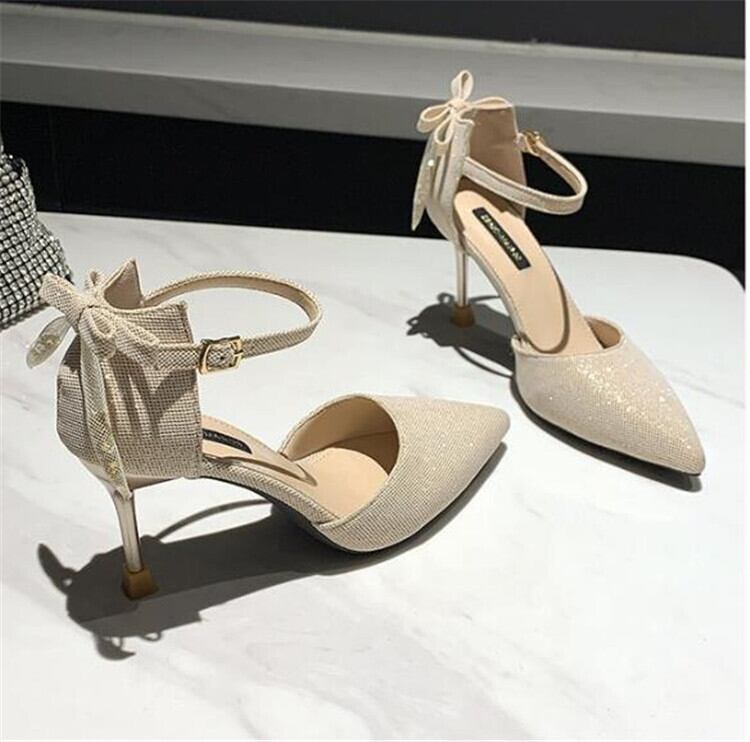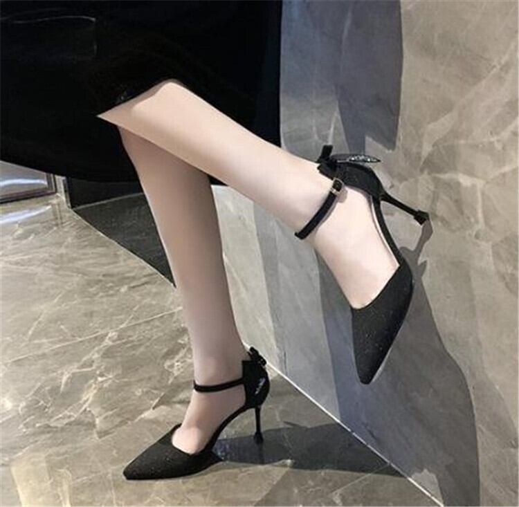 ピンヒール 大人気 ポインテッドトゥ ファッション 百掛け シューズ レディース 一言 バックル 蝶結び